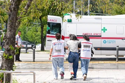 불길을 잡아내는 동시에 부상자를 신속히 이송해야 했습니다.