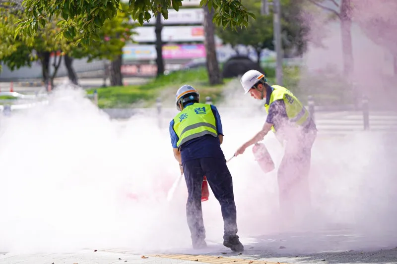 시민들도 직접 대피에 참여하고 소화기를 다뤄보는 등