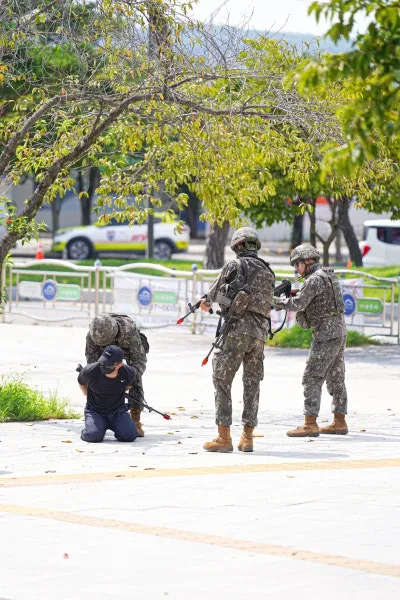 군 장병들은 테러범 제압이라는 긴박한 임무를 맡았습니다.