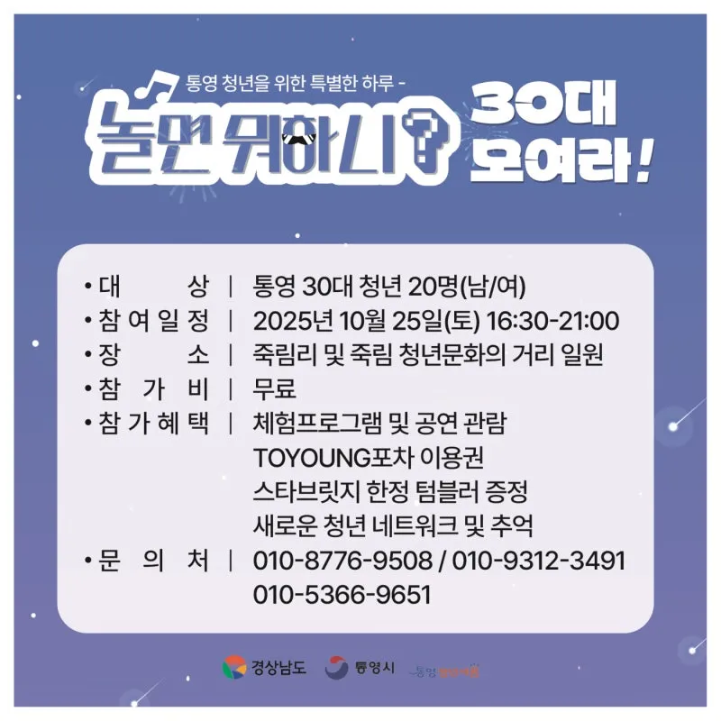 👥 대상: 통영 30대 청년 20명 (남/여)