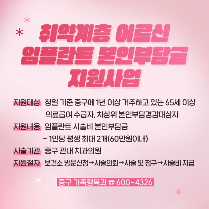 ✅취약계층 노인 임플란트 본인부담금 지원사업