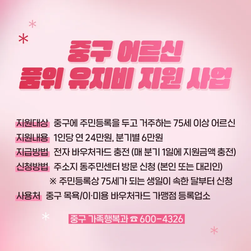 ✅「중구 어르신 품위유지비 지원사업」 시행