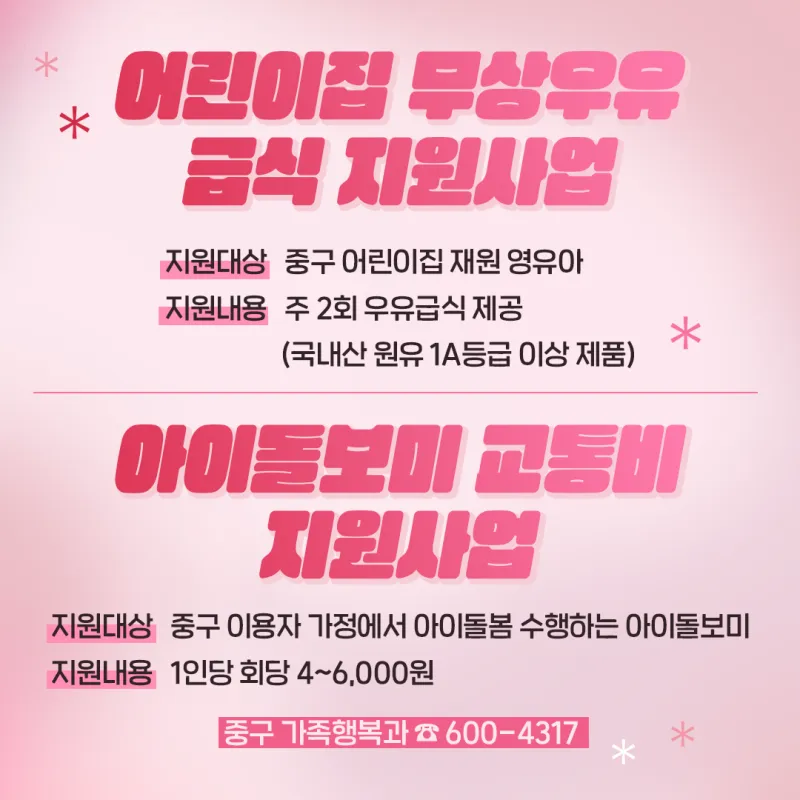 (지원대상) 중구 이용자 가정에서 아이돌봄을 수행하는 아이돌보미