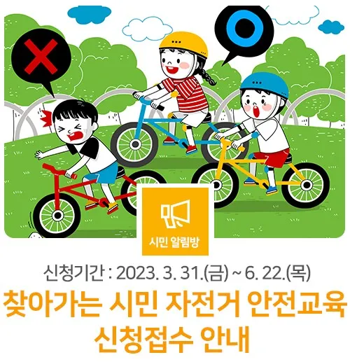 찾아가는 자전거 안전교육에 시민 여러분의 많은 참여 부탁드립니다~