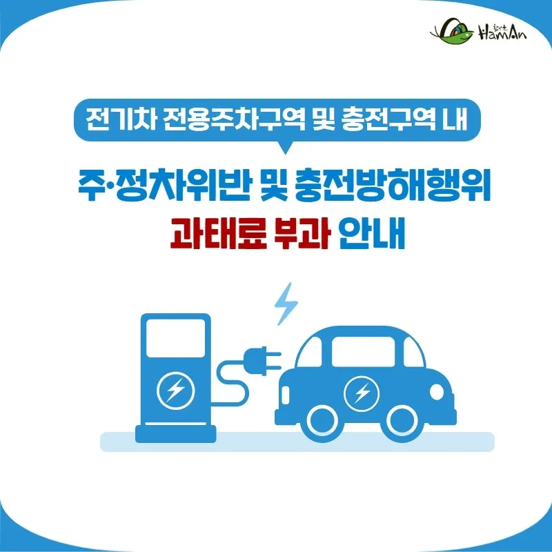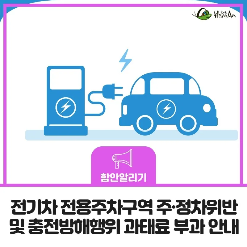 전기차 전용주차구역 내 주·정차위반 및 충전방해행위 과태료 부과 안내📢