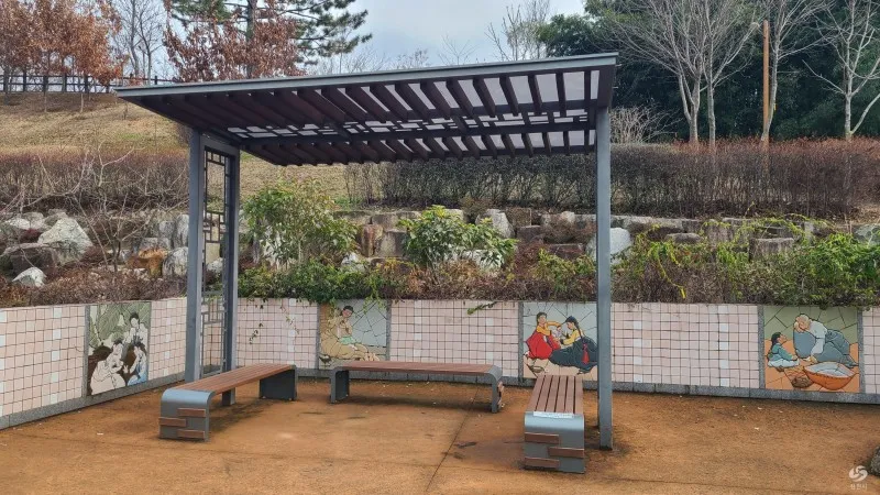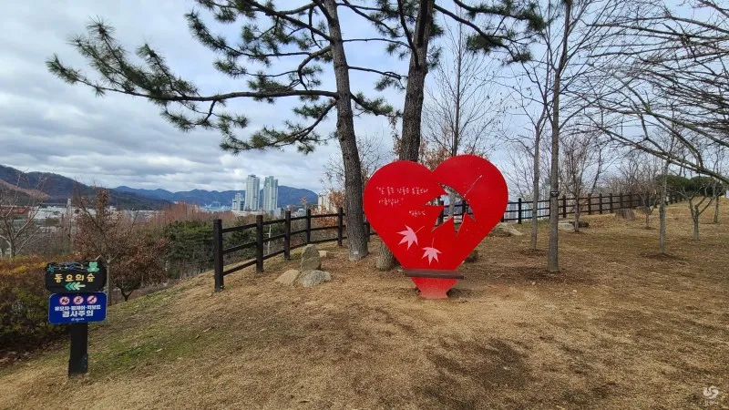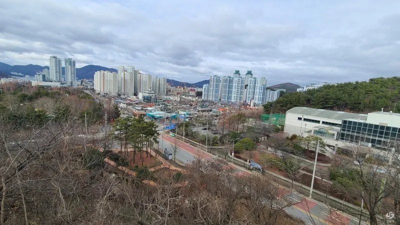 조경수가 아름답고 넓은 잔디밭이 있는 하늘정원에는 전망대 쉼터가 있어서 창원시 두대동 일대를 내려다볼 수 있죠.