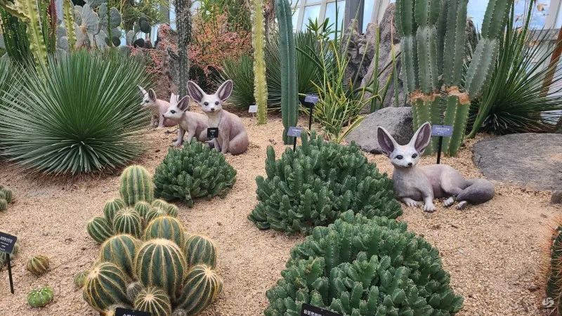 아프리카 바오밥나무에서부터 나라별 자생하는 식물과 선인장이 있으며, 사막 여우 가족도 진짜같이 전시되어 귀여운 모습입니다.