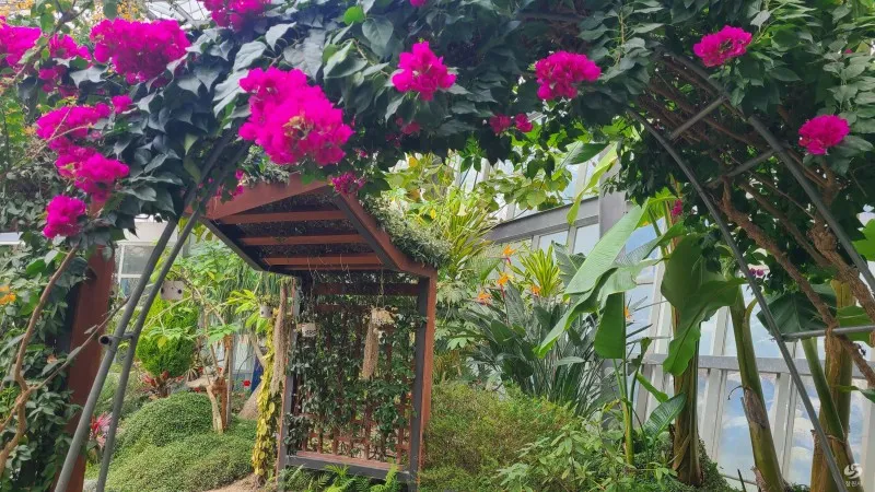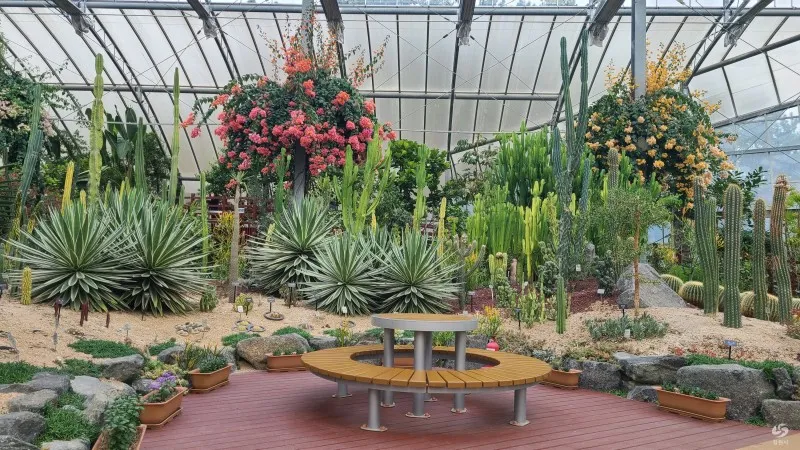대형 유리 온실에 식물 사이사이에 앉아서 감상하거나 휴식하게끔 벤치도 조성되어 있어 편합니다.