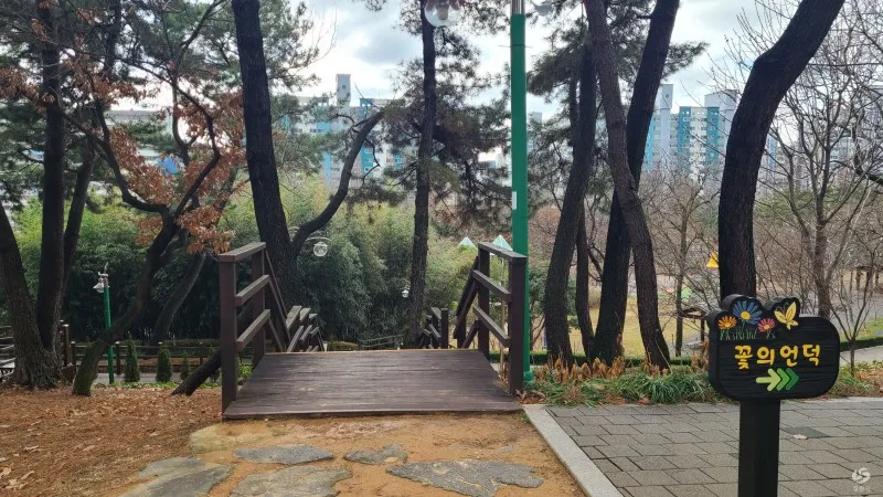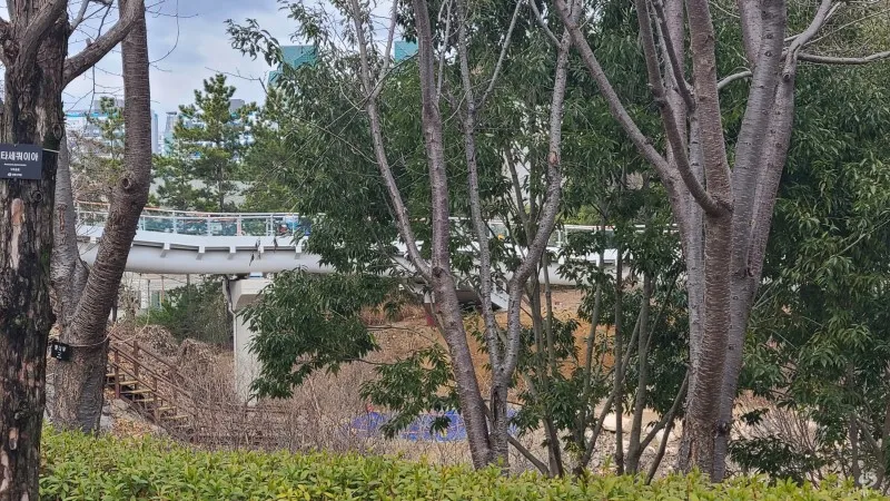 나무데크길을 따라가면 꽃의 언덕으로 갈 수 있으며, 가는 길에 수목원 건너 도로 위를 지나갈 수 있는 보도교가 막바지 공사 중이네요.