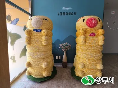 누에 조형물이 정말로 귀엽습니다.