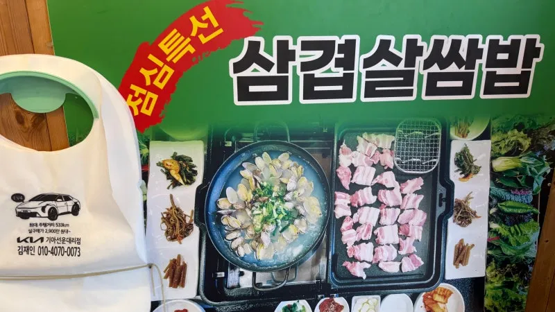 왜냐면 점심에만 파는 삽겹살 쌈밥 정식이 있기 때문이에요.