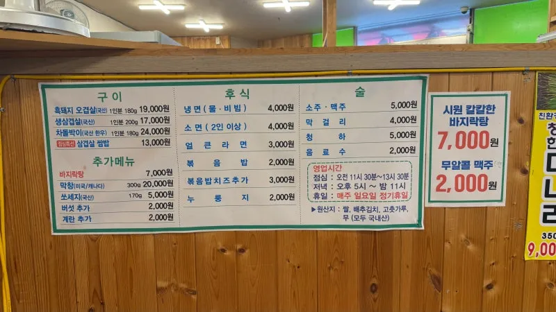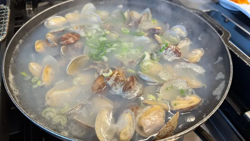 삼겹살에 바지락탕을 먹으면 딱 알맞은 세트같이 좋더라고요.