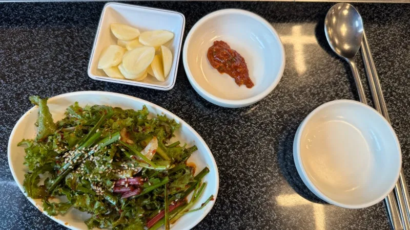 점심특선을 주문하면 야채들과 반찬을 먼저 세팅해주시는데