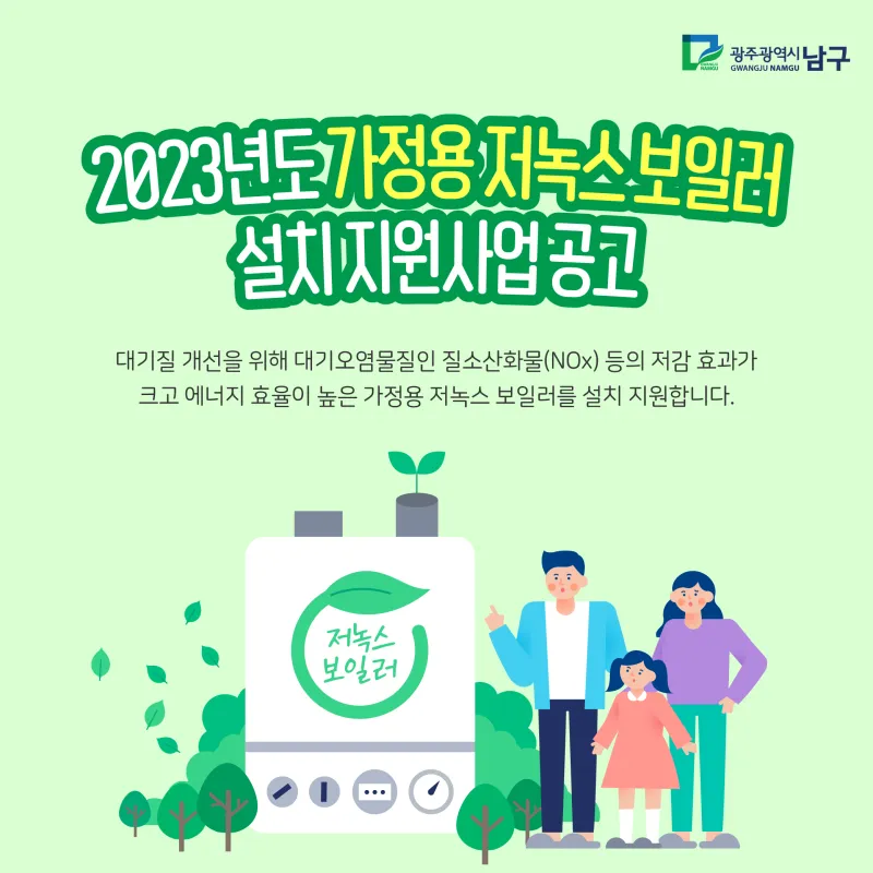 ✍지원대상 : 가정용 저녹스 보일러를 설치(교체)하는 광주광역시 남구 주민
