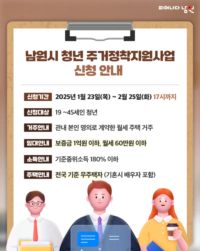 ▼2025년 남원시 청년 주거 정착 지원사업 참여자 모집 안내▼