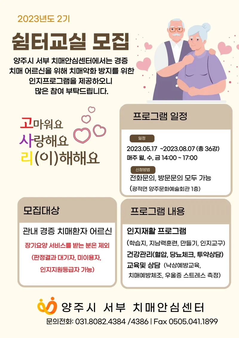 양주시 치매안심센터 경증치매어르신 쉼터프로그램