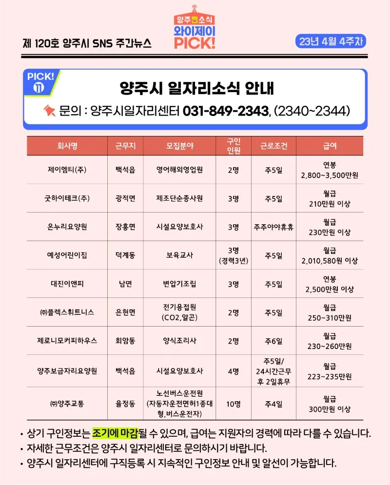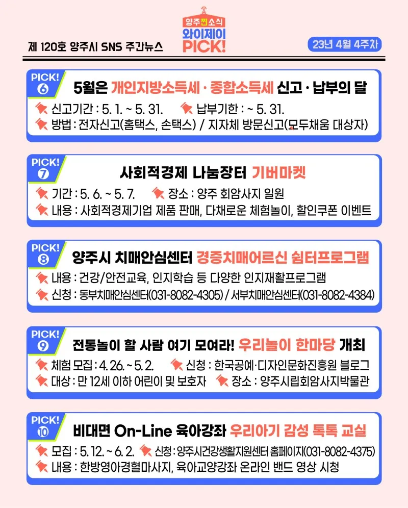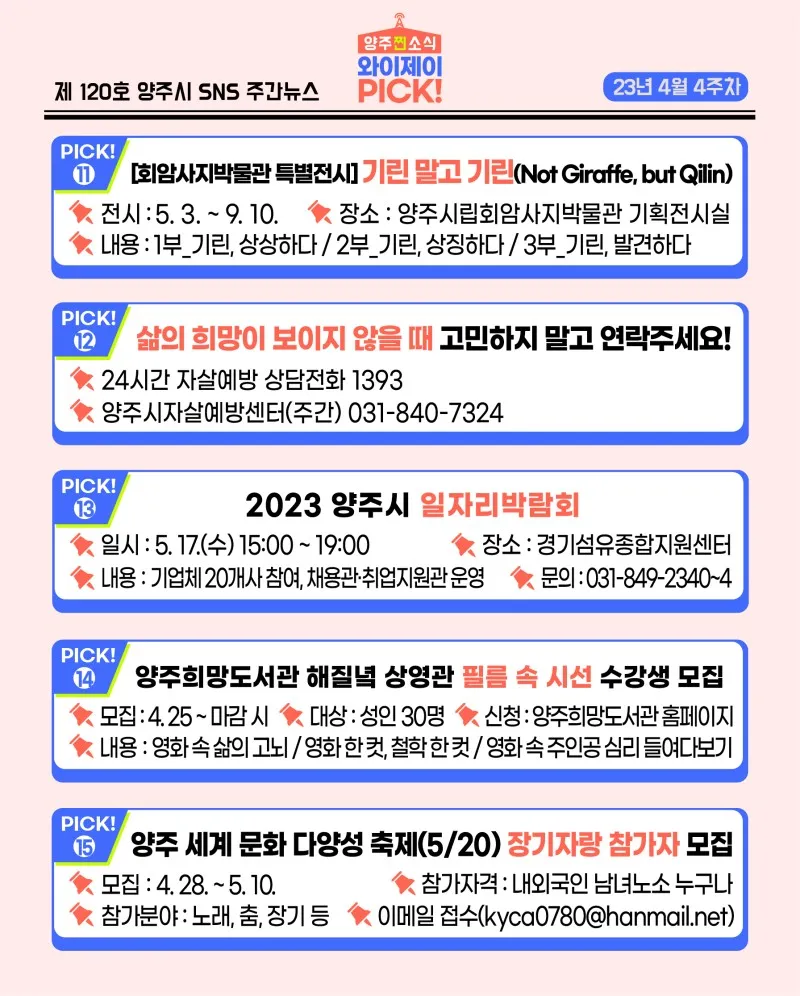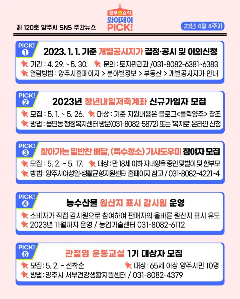 [23년 4월 4주차] 매주 전하는 양주시 유용한 정보 「와이제이 PICK!」