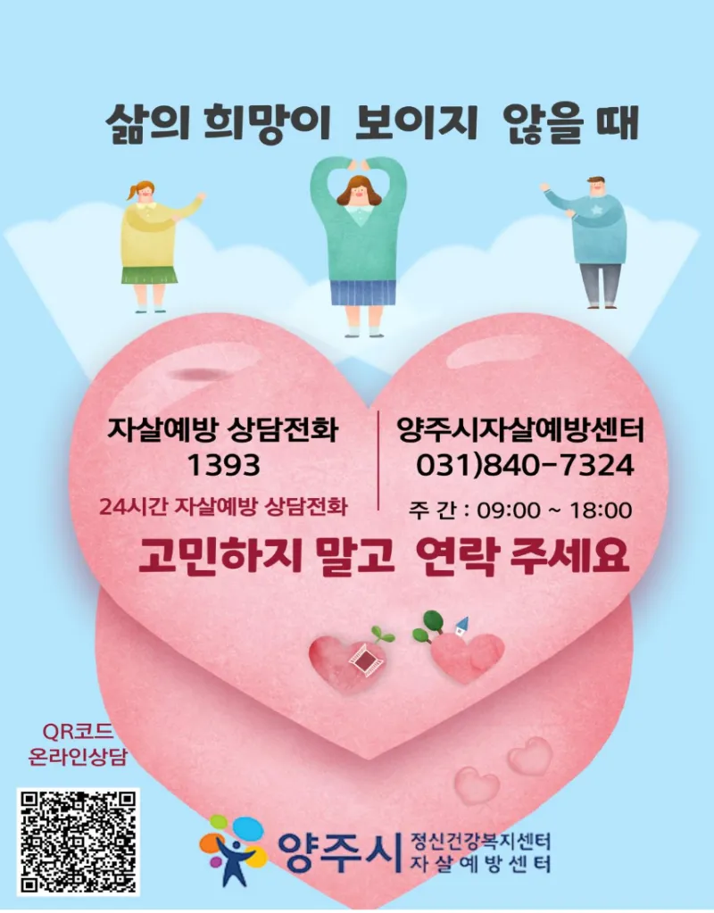 삶의 희망이 보이지 않을 때 고민하지 말고 연락주세요!
