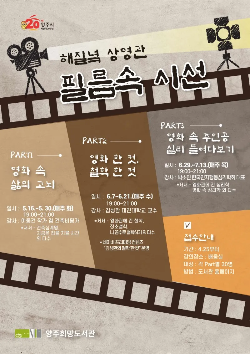 양주희망도서관 해질녘 상영관 필름 속 시선 수강생 모집