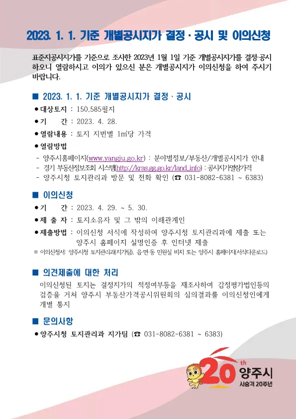 2023. 1. 1. 기준 개별공시지가 결정·공시 및 이의신청