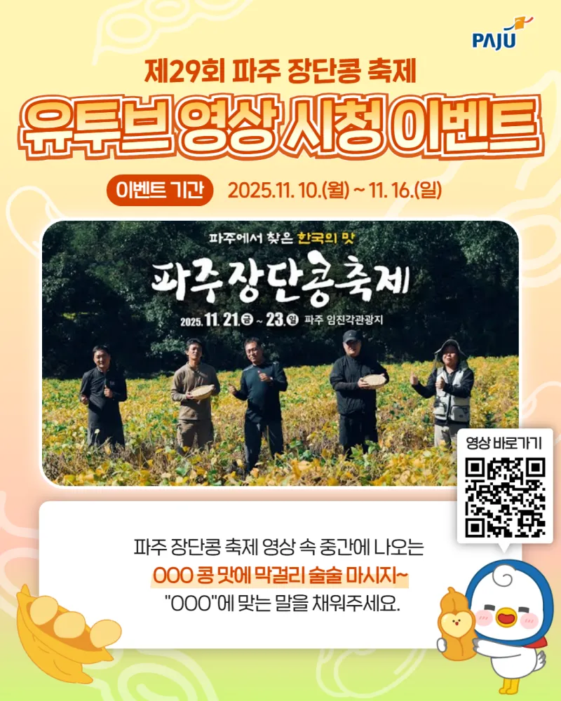 [EVENT] 제29회 파주장단콩축제 유투브 영상 시청 이벤트