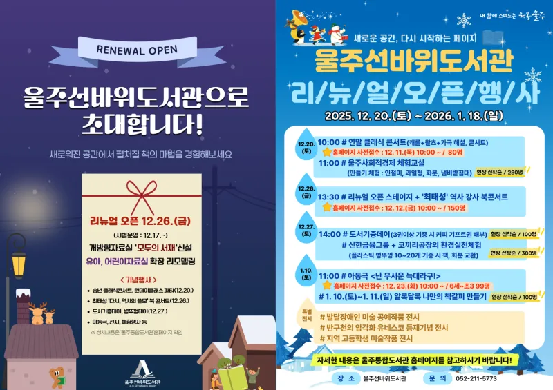 더욱 새로워진 울주선바위도서관 리뉴얼 오픈 행사 놀러오세요!
