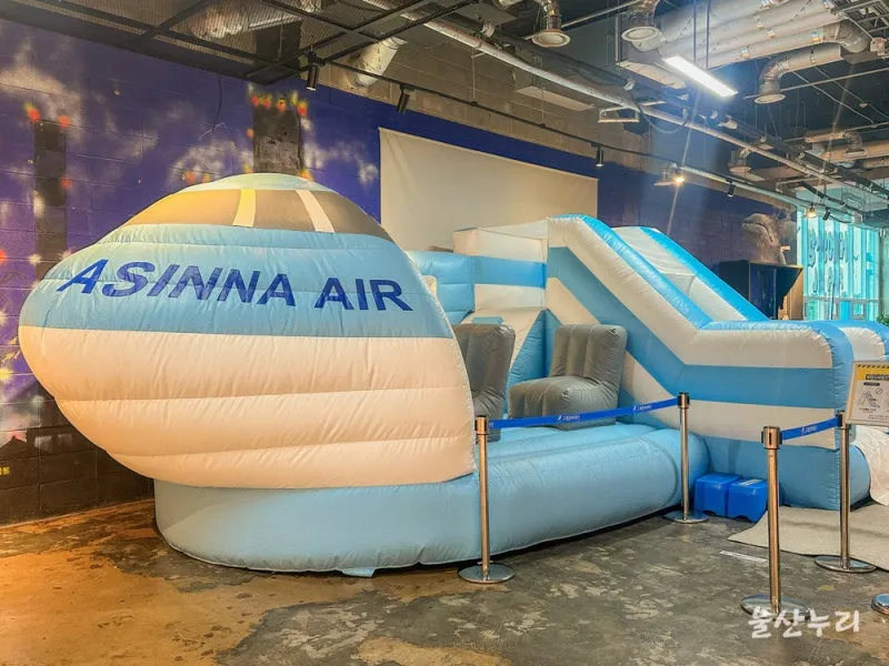 장생에어 전시 중앙에 위치한 에어바운스는 신발을 벗고 이용할 수 있고, 오후 6시까지 체험이 가능하기 때문에 이용을 원하신다면 조금 여유를 두고 방문하시는 걸 추천드려요.