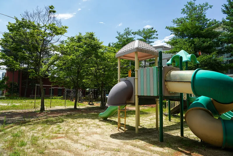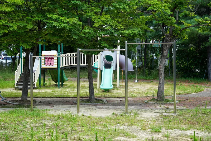다른 어린이 공원에 비해서 규모는 아담하지만 알찬 공원입니다. 놀이시설, 벤치, 운동기구, 농구장 등 작지만 꼭 필요한 요소들로만 채워진 알찬 구성이라고 할 수 있습니다.