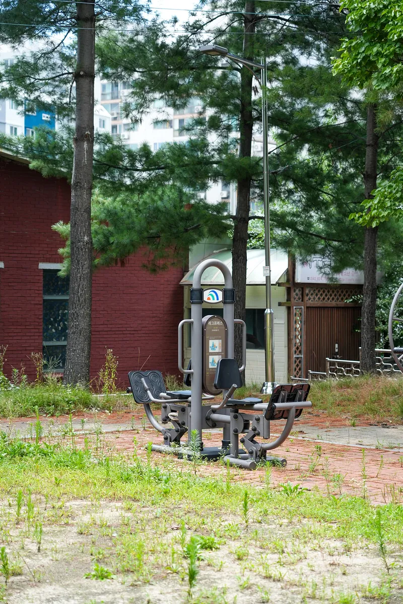 요즘에는 보기 드문 철봉도 있고 다양한 운동기구들도 준비되어 있습니다. 공원을 이용하는 분들이 많지 않은 곳이라 기다림 없이 쉽게 이용할 수 있는 게 이곳의 장점입니다. 그리고 평탄한 보도와 적당한 공간 덕분에 아이랑 자전거 연습하기도 적당해 보였습니다.