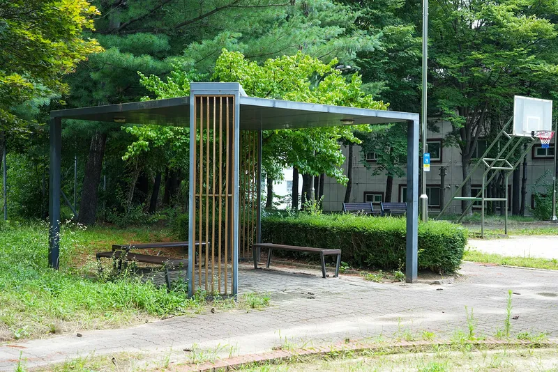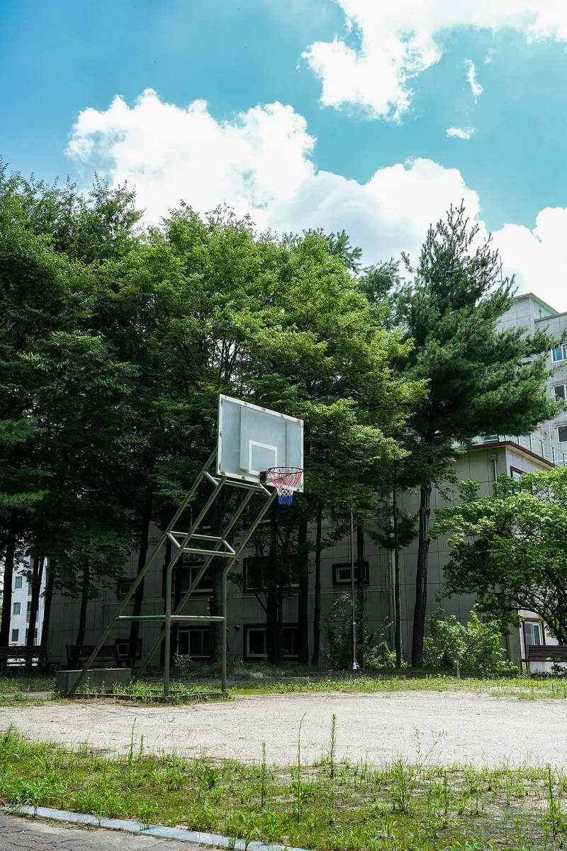 공원 한편에는 골대가 하나뿐인 하프코트가 조용히 자리 잡고 있습니다. 다른 곳과 다르게 주민들이 농구코트를 자주 이용하는지 농구코트 주변으로만 풀이 자라지 않고 있었습니다.