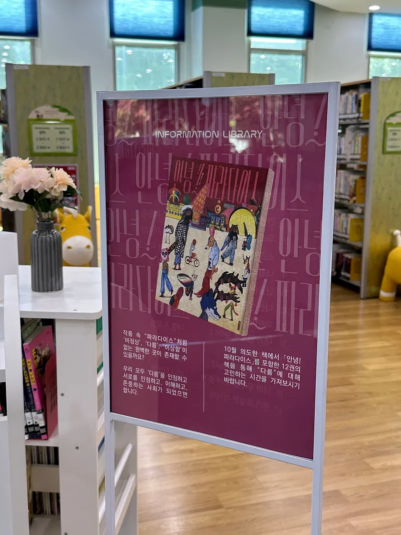 '평범하다'와 '다르다'의 기준은 어떻게 정의되고 판단되는 것인지, 그리고 우리 사회에서 어떤 관점으로 바라보아야 좋을지에 대해 어린이의 시각에서도 쉽게 이해할 수 있는 책이랍니다. 개인적으로 어린이도서, 동화책을 통해서도 배울 점이 많다고 생각하는데요. 성인도 열람이 가능한 공간이니 방문하신다면 한번 읽어보시는 것을 추천드립니다.