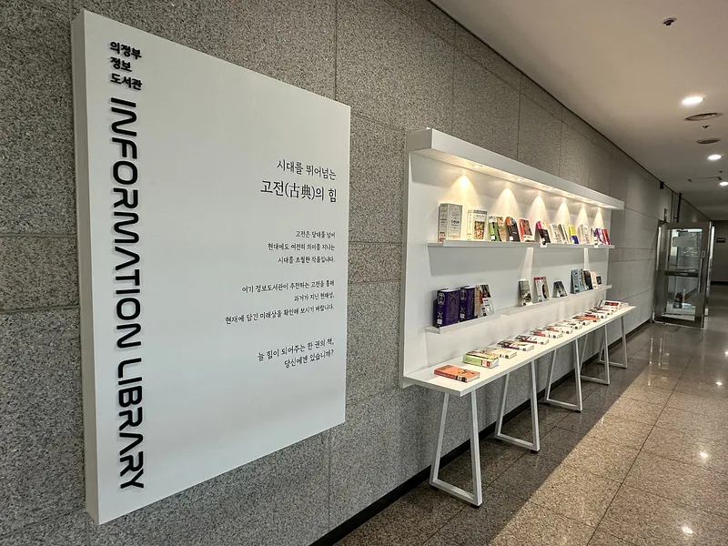 그리고 문헌정보실 왼쪽 벽에는 이렇게 고전분야 추천도서도 전시되어 있는데요.