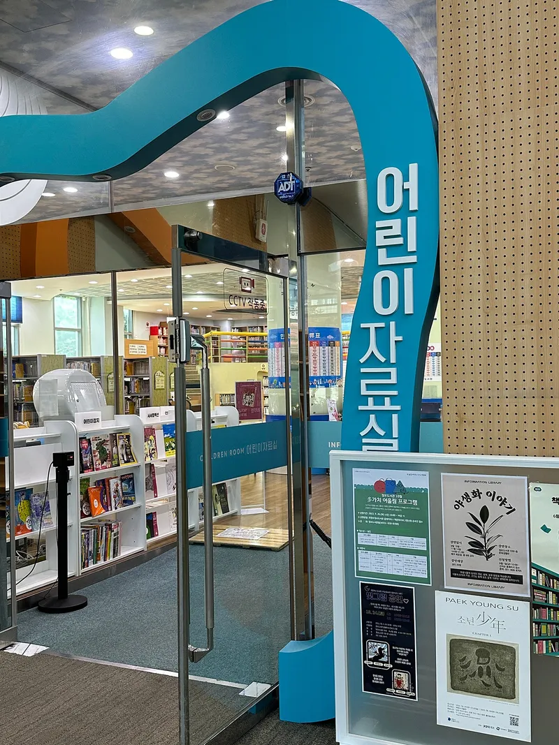 이렇게 어린이자료실 바로 입구에 전시되어 있습니다.