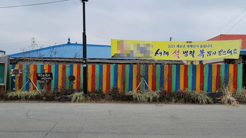 마을회관 앞에는 무궁화 꽃이 피었다는 푯말도 있고 뒤에 있는 벽은 알록달록 색동옷을 입을 것 같습니다.