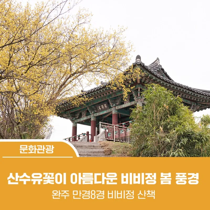 제목 완주 봄 여행, 산수유꽃이 아름다운 만경8경 비비정 봄 풍경 - 아름다운 비비정 산책 |