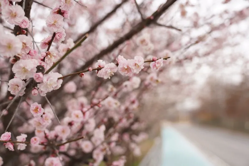 비비낙안카페에서 내려와 비비정 방향으로 가는 길가에 매화가 환하게 웃고 있습니다. 흰색과 분홍색이 적당히 어울려 멋진 그림이 되었습니다. 비록 짧은 구간의 매화 꽃길이지만 봄이 주는 큰 선물이었습니다.
