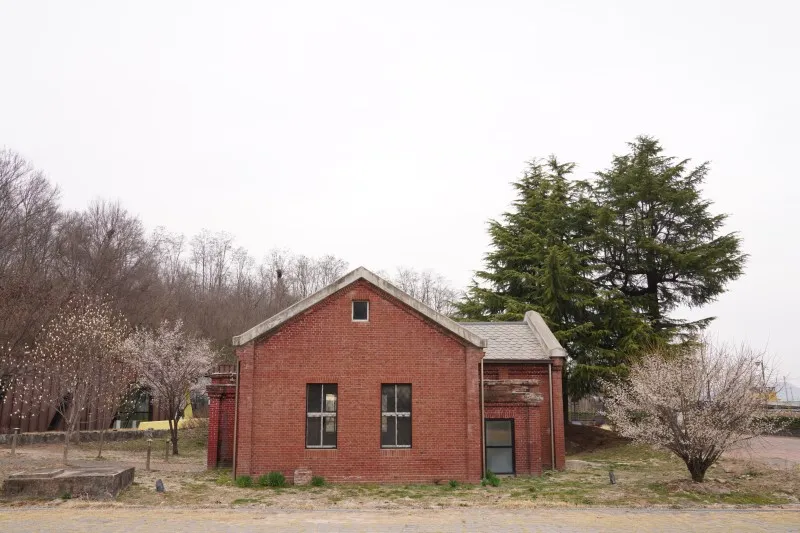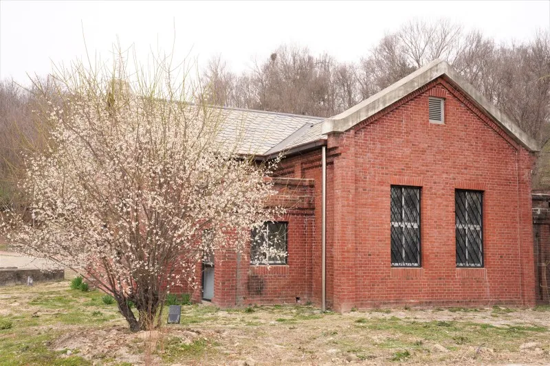 삼례양수장 동쪽에 있는 2개의 집수정에서 물을 끌어와 위쪽에 있는 정수장으로 올려주는 역할을 했습니다. 근대 상수도 시설로 역사적 가치가 인정되어 등록문화재로 지정되었습니다. 붉은색 벽돌 건물 앞에 활짝 핀 매화가 잘 어울립니다.