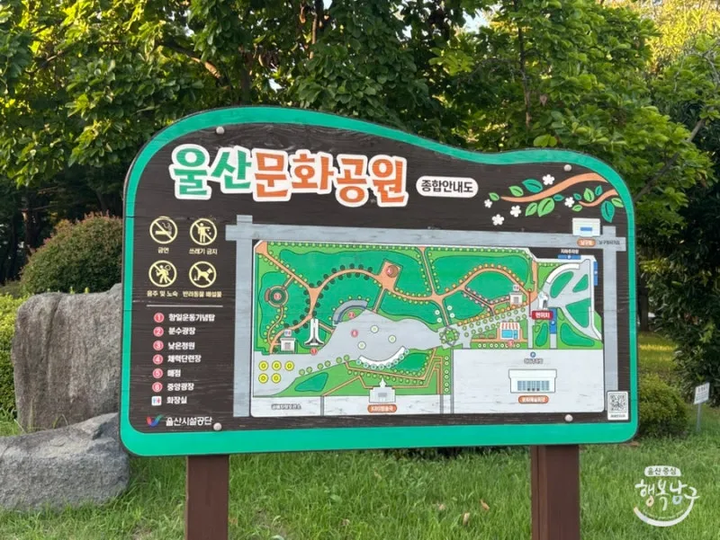 울산문화공원 종합안내도입니다. 광장도 넓고 조경도 예쁘게 되어있고, 음수대, 화장실도 구비되어 있습니다.