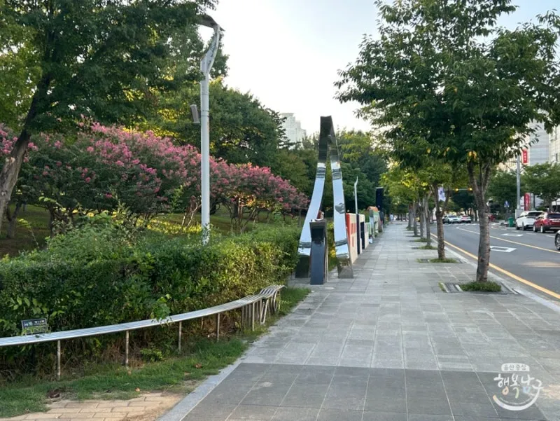 산책로 주변으로 조경이 잘되어 있어서 편안하게 휴식하기 좋은 공간이랍니다.