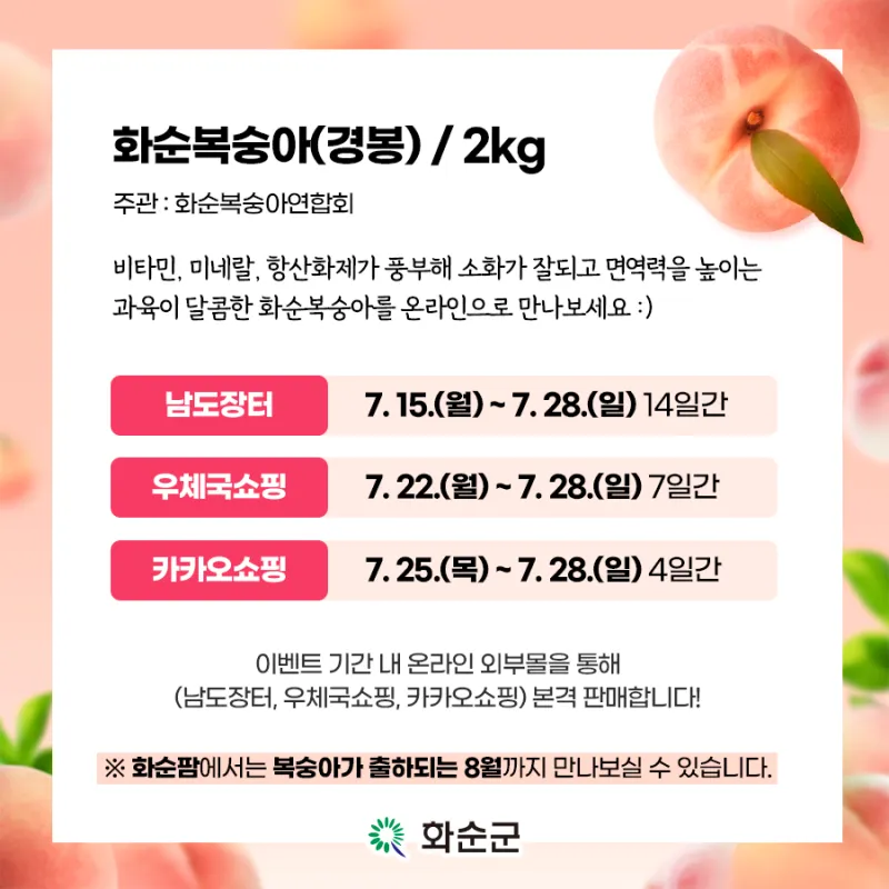 화순복숭아 온라인 판매 14일간 이벤트 실시
