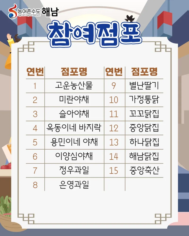 해남매일시장 내 15개 점포에서 국산 농축산물을 구매하면