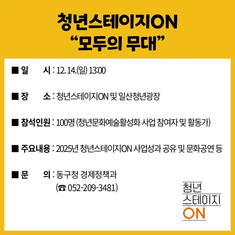 울산 동구 주간TALK, 청년스테이지ON "모두의 무대"