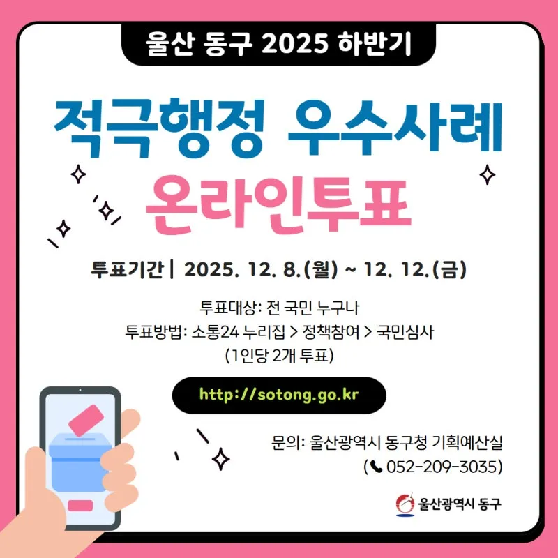 ▶ 울산 동구 2025 하반기 적극행정 우수사례 온라인투표