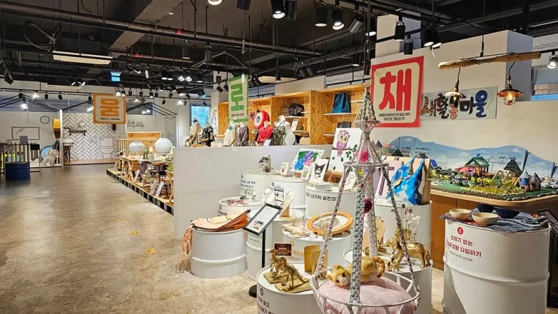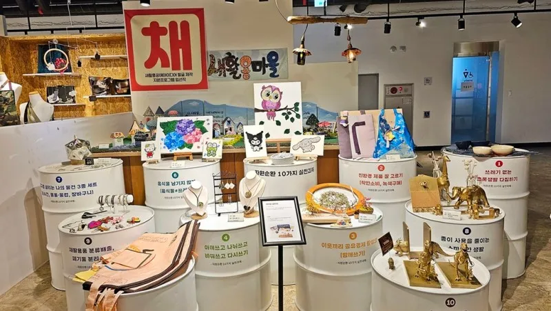 새활용공예품 공모전 수상작과 새활용공예 아이디어 발굴 제작 지원프로그램 입선작품들을 전시하고 있습니다.
