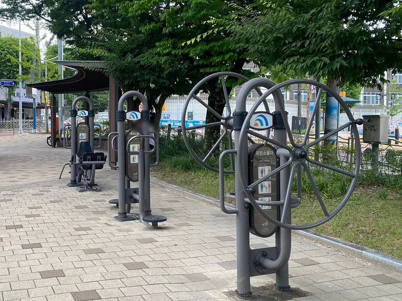 범샛골어린이공원은 규모가 크진 않지만, 놀이터, 산책로, 정자, 벤치, 운동 기구 등이 조화롭게 구성된 동네 공원으로 아이들이 노는 동안 부모는 그늘에서 휴식하거나 간단한 운동 기구를 이용할 수 있는 점도 만족스러웠습니다.