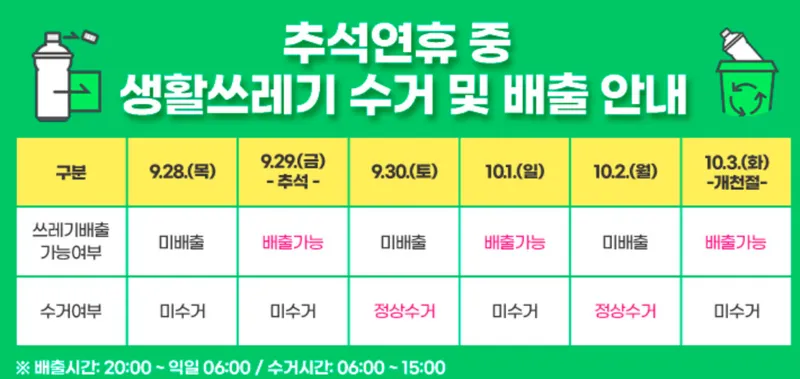2023년 추석 연휴기간 생활쓰레기 수거 및 배출 안내