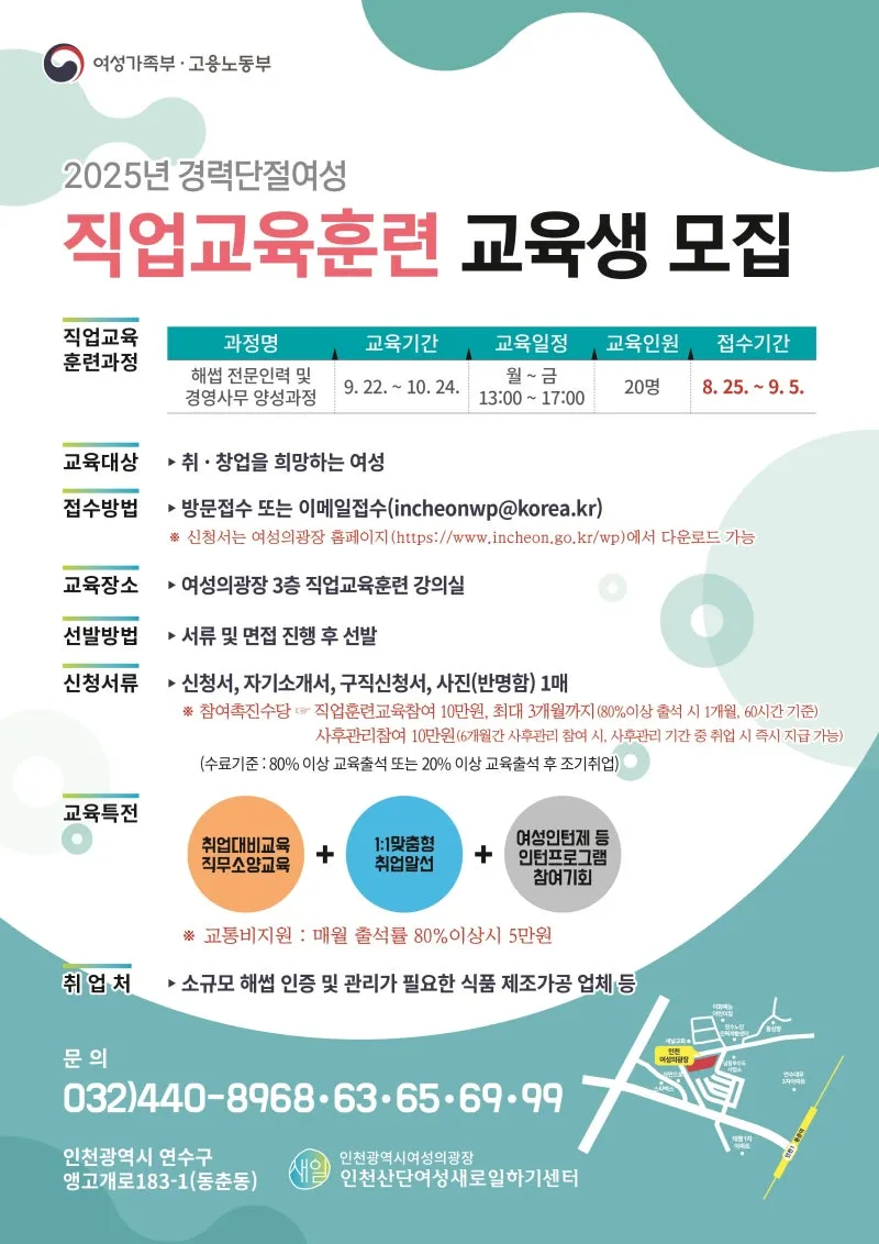 인천산단새일센터 경력단절여성 직업교육훈련 교육생 모집