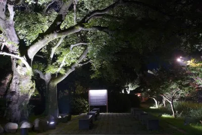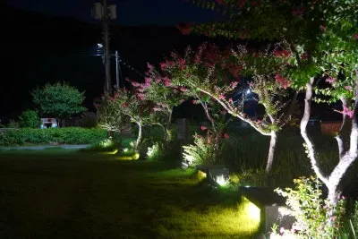 연못 주변의 배롱나무는 어둠 속에서도