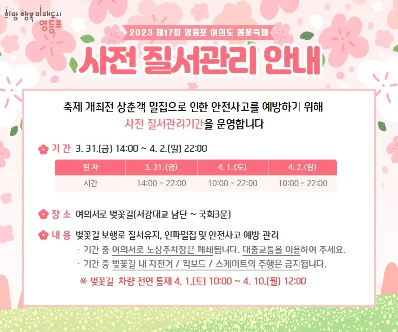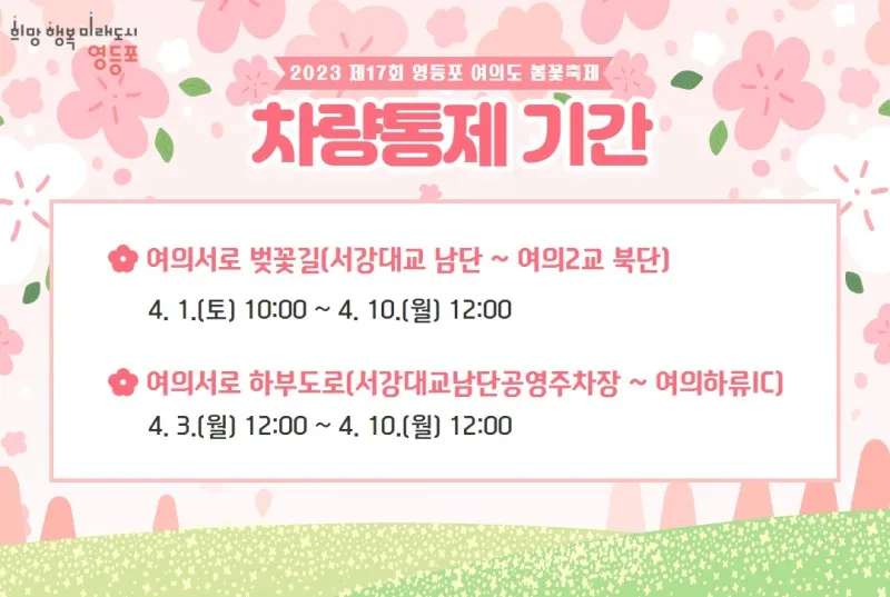🌸2023 제17회 영등포 여의도 봄꽃축제 <사전 질서관리 및 차량통제기간 안내>