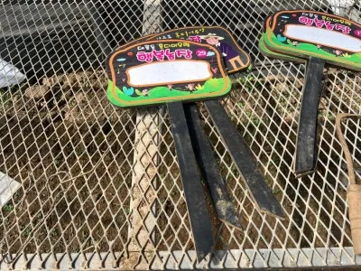 텃밭을 배정받은 후, 명패를 작성했습니다.